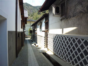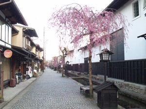 古川のシンボル、白壁の土蔵と鯉が泳ぐ瀬戸川を写し今夜の宿の温泉へ。