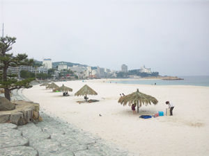 まだ時間が早いので海水浴客も少なく、白い浜が更に際立っていた。
