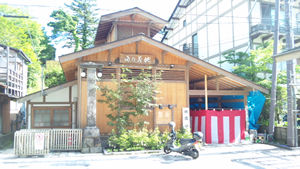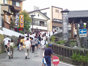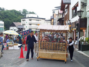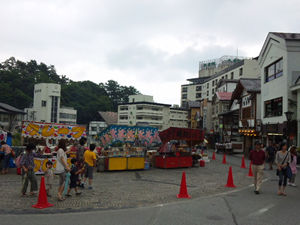 今日明日と白根神社のお祭りのようで、いつもの湯畑の雰囲気とも違う。