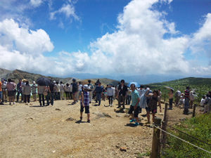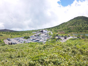 駐車場の渋滞である程度想像はしていたが、湯釜が見える場所には想像以上の人が。