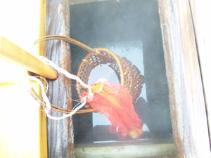 そして、麻釜でとうもろこしと卵を茹でて食べ・・・、味は少々残念。
