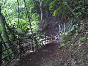 国道から看板に従い小さな路地を入っていくと・・・、滝より面白そうな光景が目に入ってきた。
