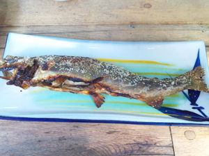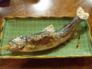 炭火でじっくり焼かれた岩魚は、なんと頭から尻尾まで全て食べれるくらいになっていた。