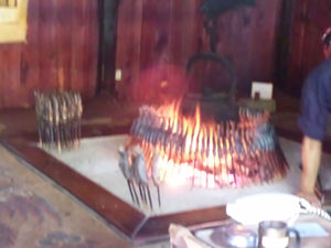 その囲炉裏は建物の一番奥にあって、さらに囲炉裏を中心に岩魚が仲良く円になって整列している。