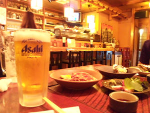 到着草々幸の湯でサウナと温泉を楽しみ、その後は徒歩数分にある居酒屋さんへ。