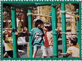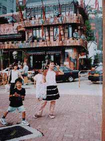 しばらく歩くと屋台通りの先に公園があった。子供達はそれを見つけると一気に走っていった。ここまで来ても公園には惹かれるらしい。