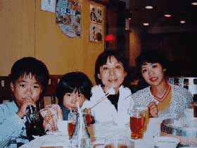 5.6人掛け程度のソファーに座り池田奥さんお勧めのメニューを注文。子供たちもジュースで「いただきま〜す」