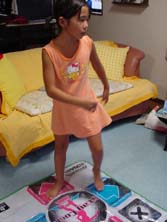 「ちょっと、前の子にかかったかな?あ、そうそう、床は、ちゃんとふいたよー。えらいでしょう!」