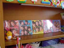 机の他にはキーボードとテーブルがあります。 モーニング娘のCDばかりです。
